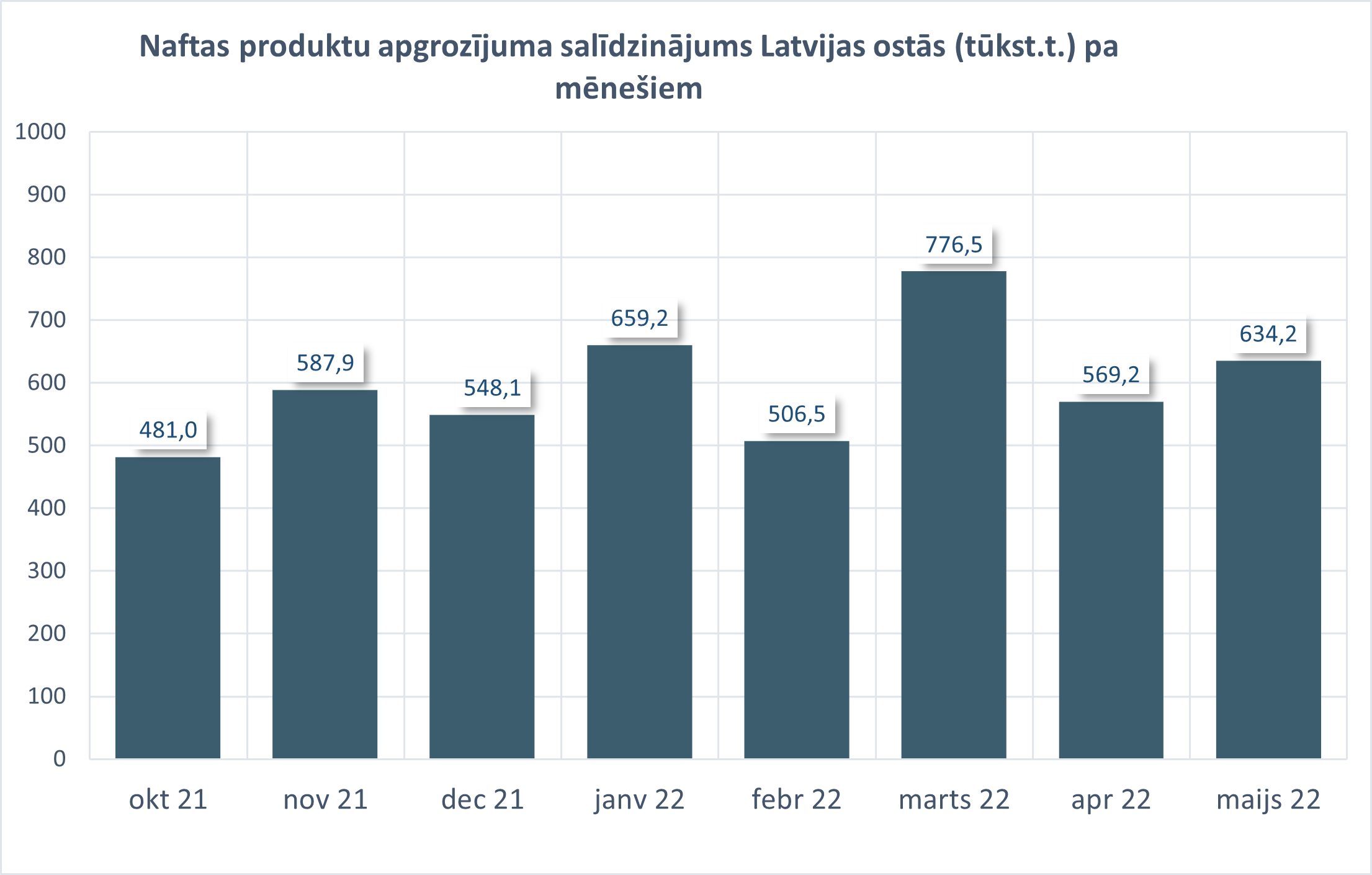 Lai gan maijā pārkrauto naftas produktu kravu apjoms salīdzinoši ar aprīli palielinājies par 11%, salīdzinājumā ar pagājušo gadu tas ir samazinājies par 22,2% - piecos mēnešos kopā pārkrauta 3,1 tonna naftas produktu. Paredzams, ka pret Krieviju noteikto sankciju ietekmē naftas produktu apjoms ostās turpinās samazināties.